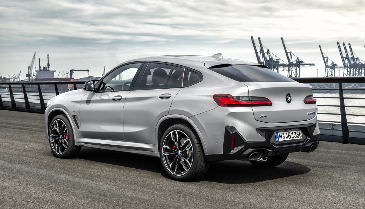 اما من الخلف تختلف السيارتين بشكل كبير، حيث تأخذ BMW X4 طابعًا رياضيًا بفضل التصميم الكوبيه وتجد السقف المائل مع المصابيح الخلفية بتصميم جديد تمامًا ورياضي في المقام الأول، وحصلت السيارة ايضًا على تعديلات الـM-Power في النسخ الـM.