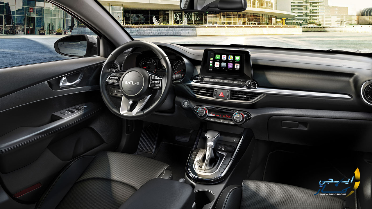 اما عن التصميم الداخلي فهو ليس الأكثر عصرية وسط المُنافسين، لكن جاء بعجلة قيادة جديدة مُزدوجة بشعار كيا الجديدة بالإضافة الى شاشات جديدة بأحجام أكبر وتطعيمات عديدة من الجلد.